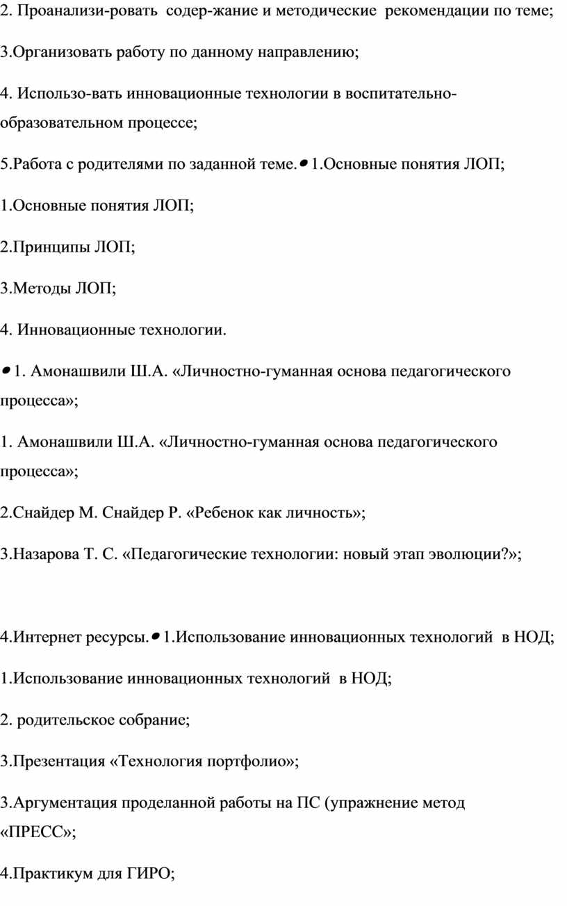 1. Амонашвили Ш.А. «Личностно-гуманная основа педагогического процесса»; 2.Снайдер М. Снайдер Р. «Ребенок как личность»; 3.Назарова Т. С. «Педагогические технологии: новый этап эволюции?»;