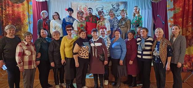 А причина поволноваться была: зал клуба был полон! А потом с его легкой руки полились песни одна за другой. Тематика их была очень разнообразна: о Родине, о любви, о верности родному краю, о защитниках Отечества разных времен. Это были песни Великой Отечественной войны, защитниках СВО. Кстати интересно, ярко была оформлена фронтальная стена зала, где как раз отражались герои ВОВ и СВО.