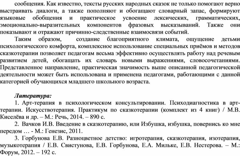 2. Вачков И.В. Введение в сказкотерапию, или Избушка, избушка, повернись ко мне передом … - М.: Генезис, 2011.