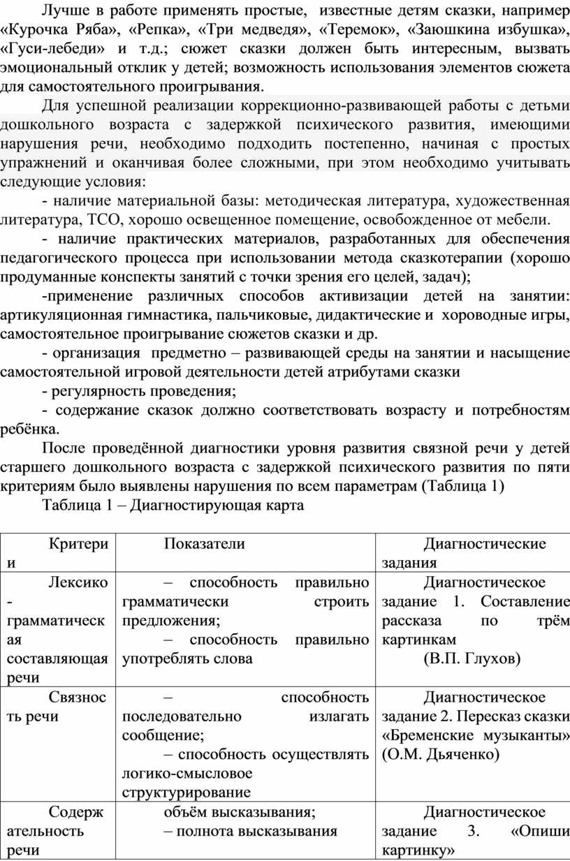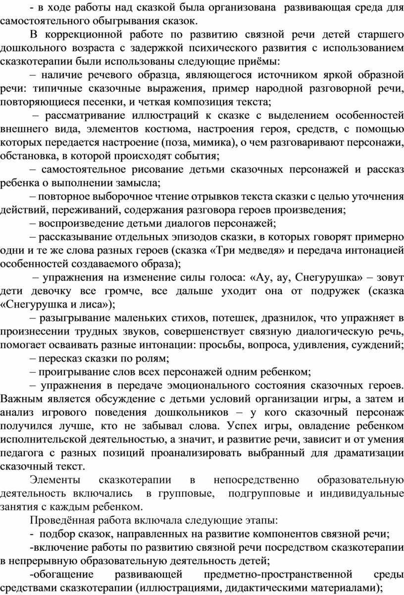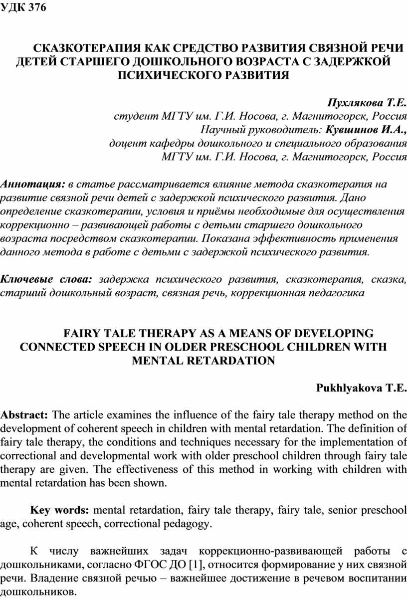 СКАЗКОТЕРАПИЯ КАК СРЕДСТВО РАЗВИТИЯ СВЯЗНОЙ РЕЧИ ДЕТЕЙ СТАРШЕГО ДОШКОЛЬНОГО ВОЗРАСТА С ЗАДЕРЖКОЙ ПСИХИЧЕСКОГО РАЗВИТИЯ