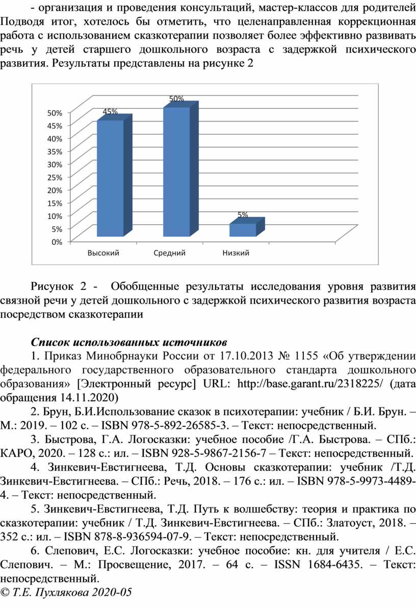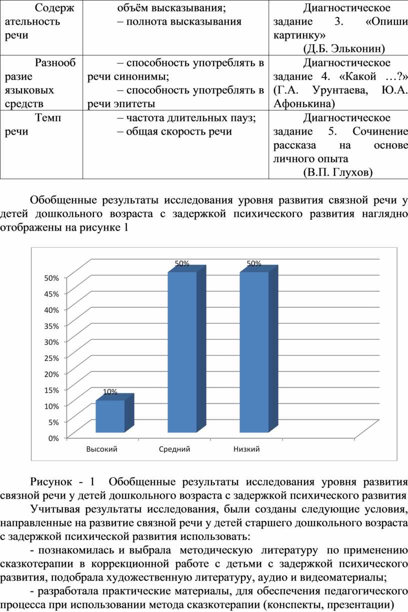 - организация и проведения консультаций, мастер-классов для родителей Подводя итог, хотелось бы отметить, что целенаправленная коррекционная работа с использованием сказкотерапии позволяет более эффективно развивать речь у детей старшего дошкольного возраста с задержкой психического развития. Результаты представлены на рисунке 2