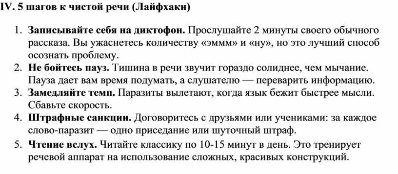 IV. 5 шагов к чистой речи (Лайфхаки)
