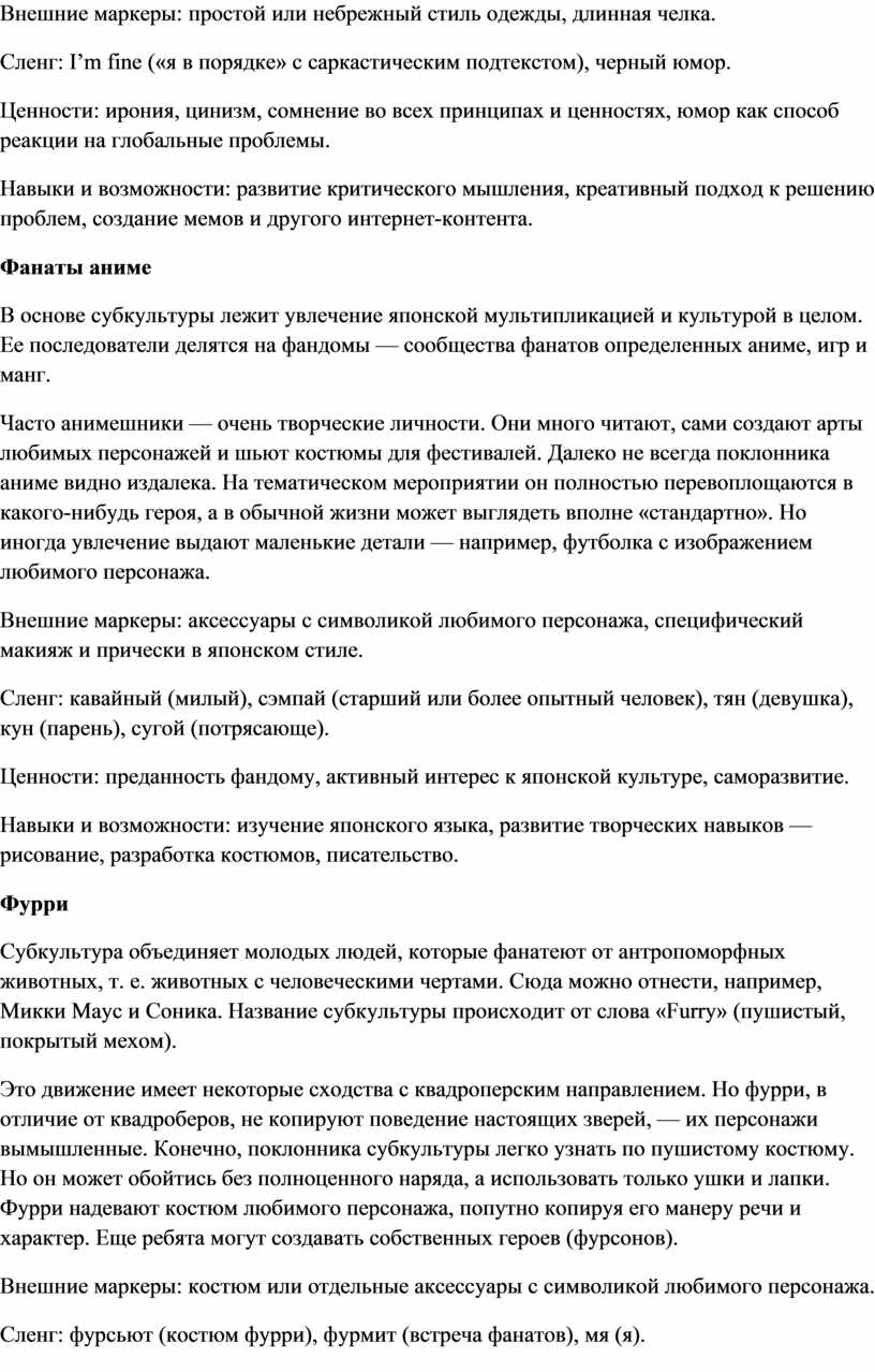 Цифровая грамотность. Современные субкультуры активно существуют в интернете, что стимулирует осваивать цифровые навыки: создание контента, монтаж видео, ведение блогов, продвижение в соцсетях.