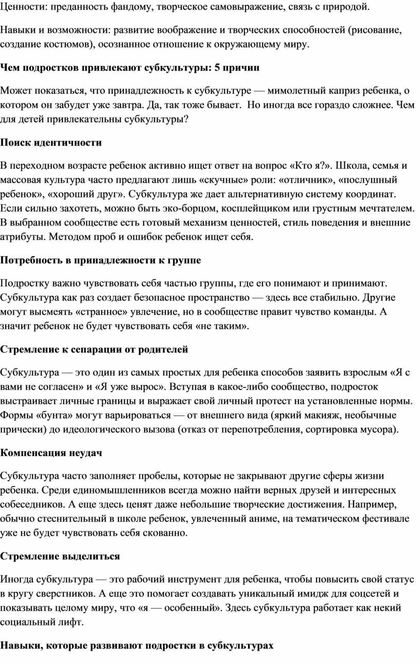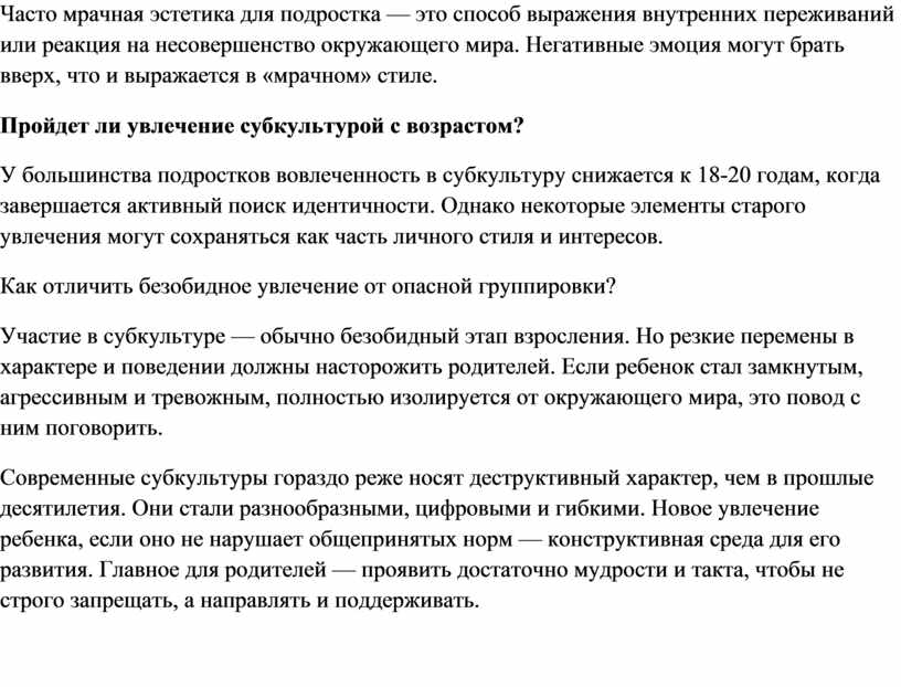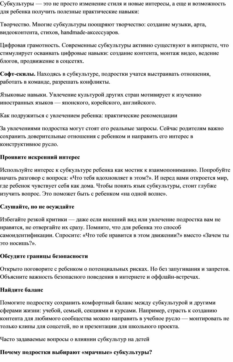 Часто задаваемые вопросы о влиянии субкультур на детей