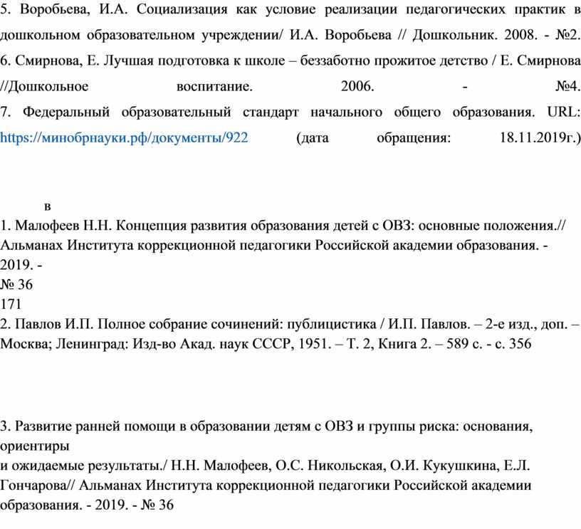 Малофеев Н.Н. Концепция развития образования детей с ОВЗ: основные положения.//