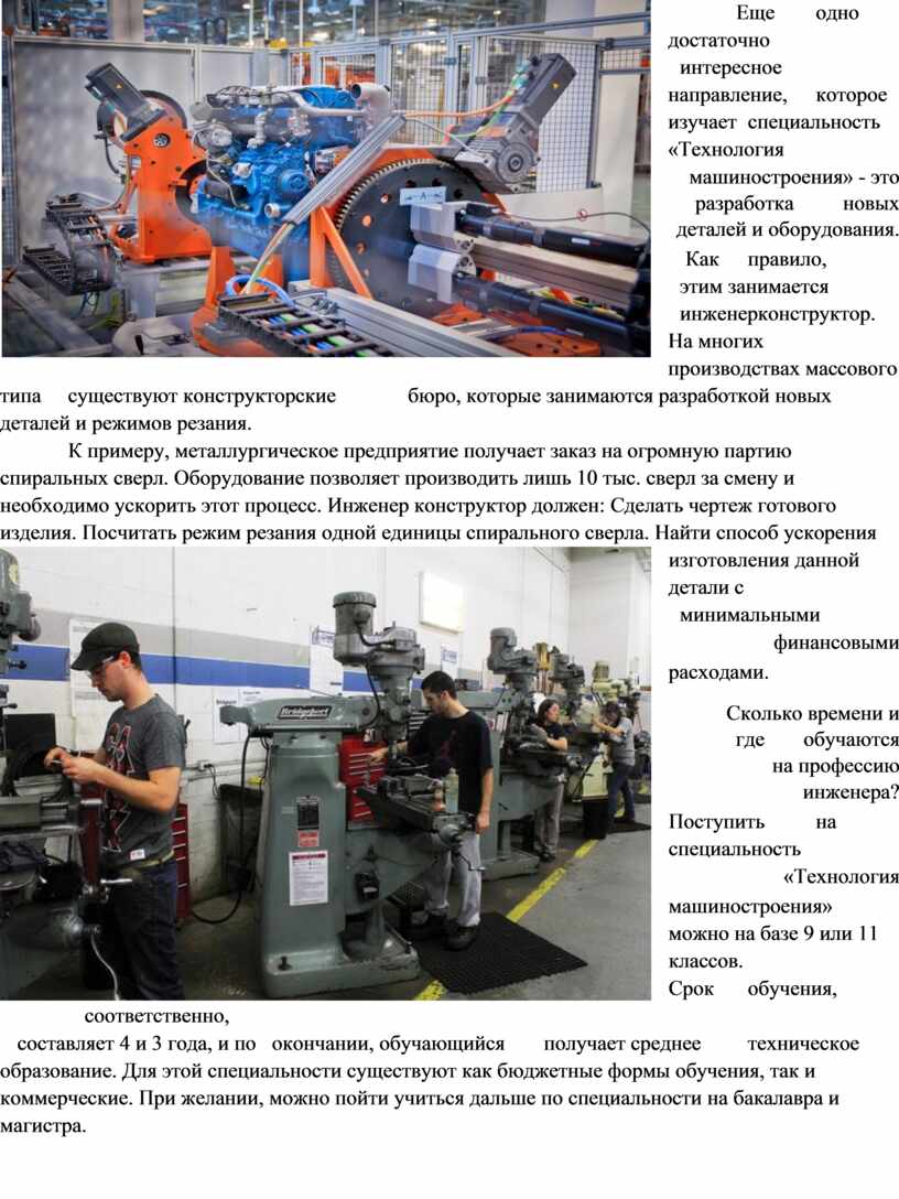 Специальность «Технология машиностроения» дает возможность получить квалификацию инженера, которая
