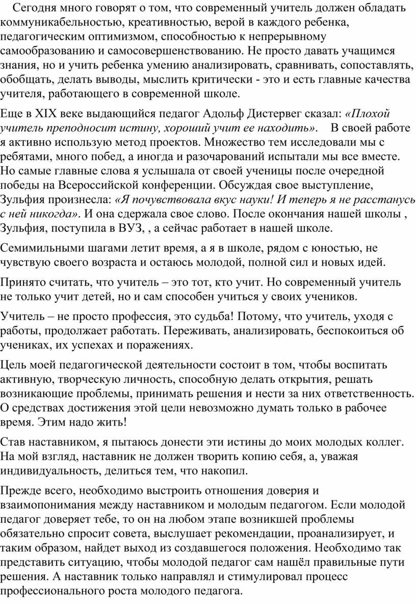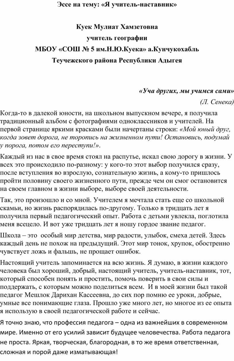 Эссе на тему: «Я учитель-наставник»