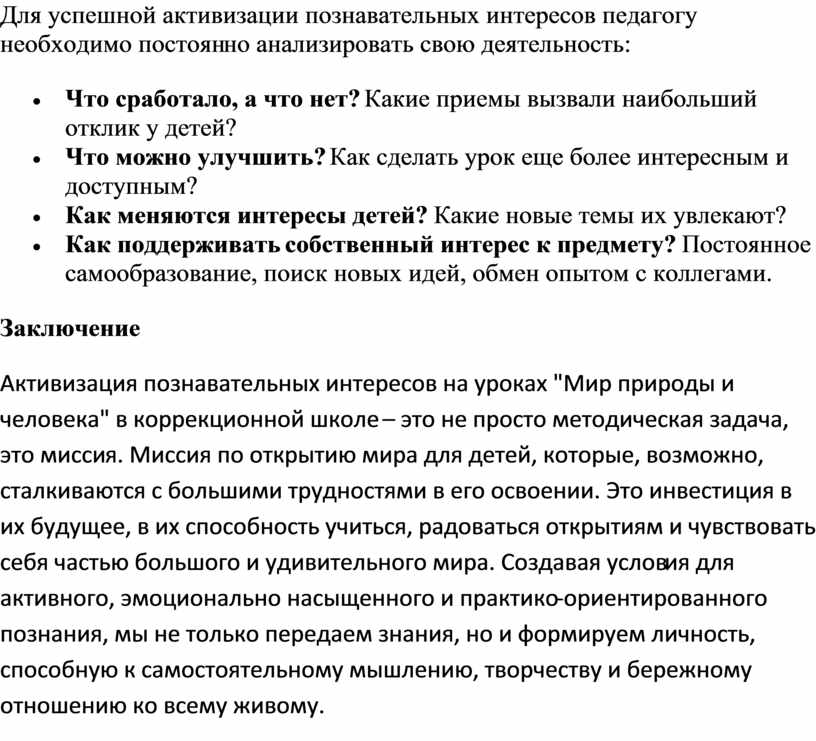 Для успешной активизации познавательных