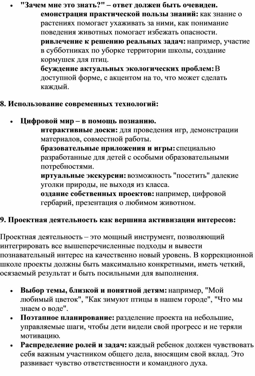познавательный интерес на качественно новый уровень. В коррекционной школе