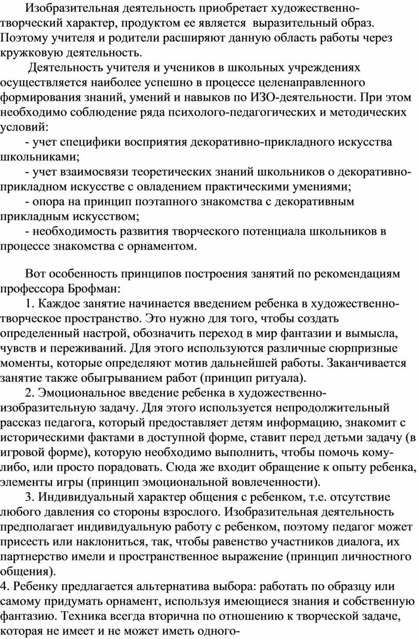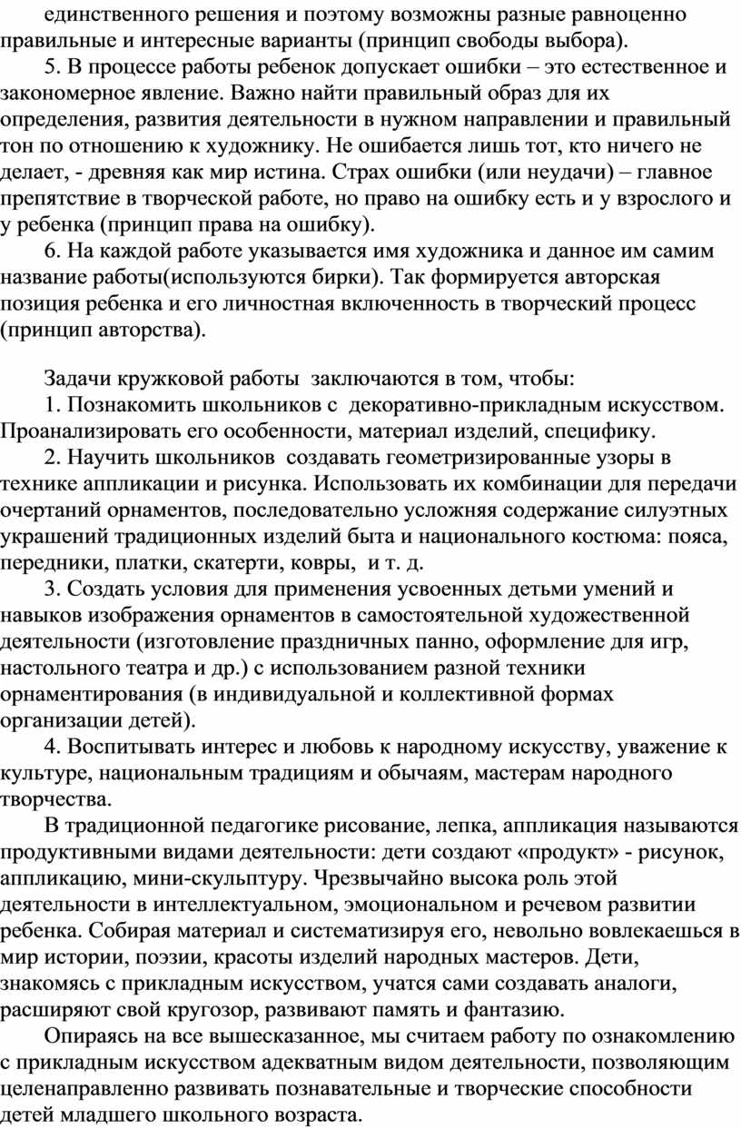- учет взаимосвязи теоретических знаний школьников о декоративно-прикладном искусстве с овладением практическими умениями;
