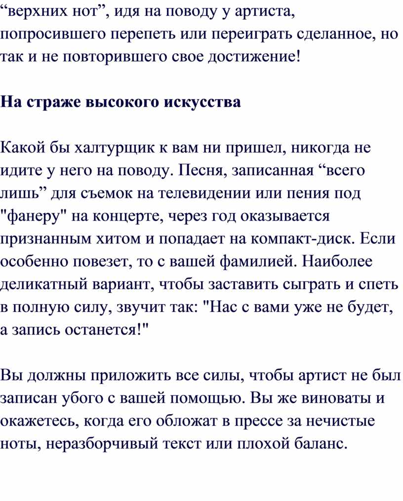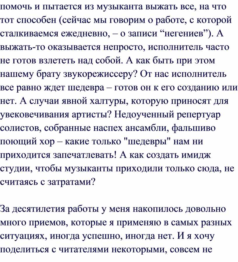 композитора и музыканта в одном лице в условиях студии звукозаписи. И нелишне