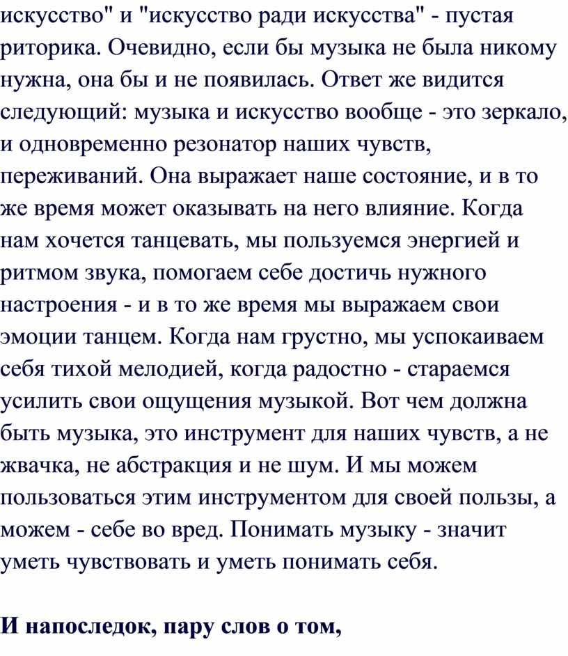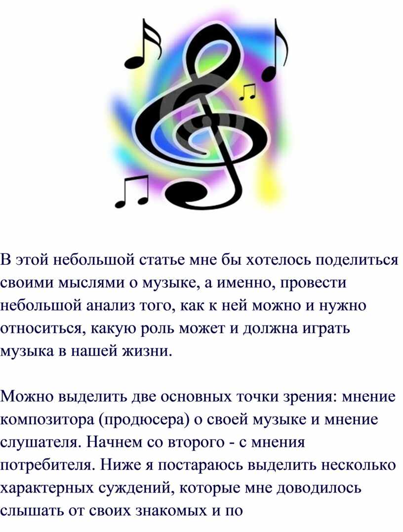 музыки позволила ей обрести принципиально иной статус бытования, как статус