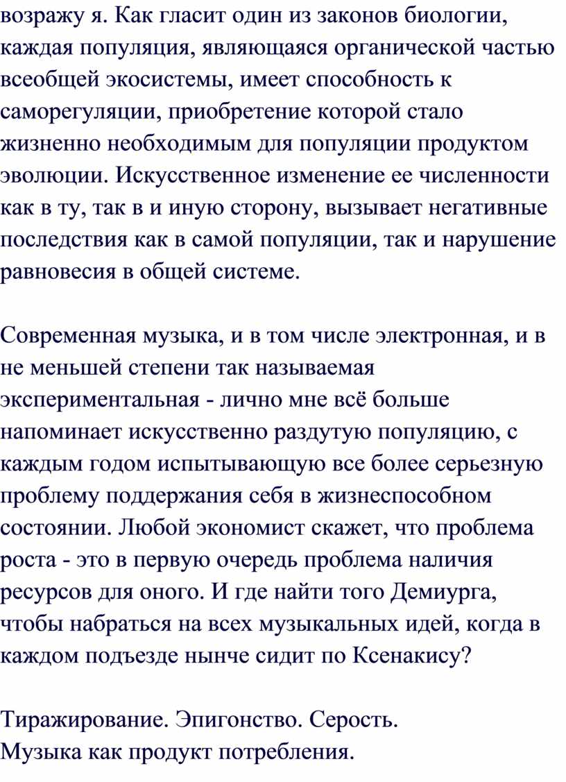 современных музыкальных инструментов), а в вытеснении широкого слушательского
