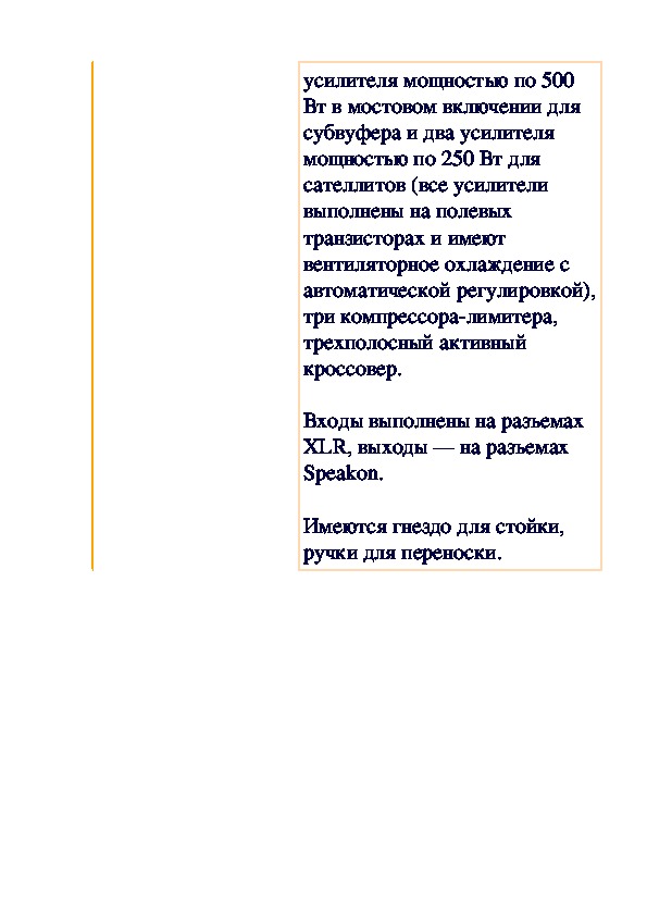 предусилителя) и питание (сетевоенапряжение) к каждой колонке. Для