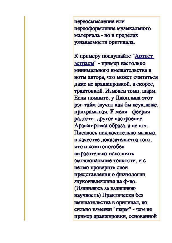 Аранжировка это любоепереосмысление или