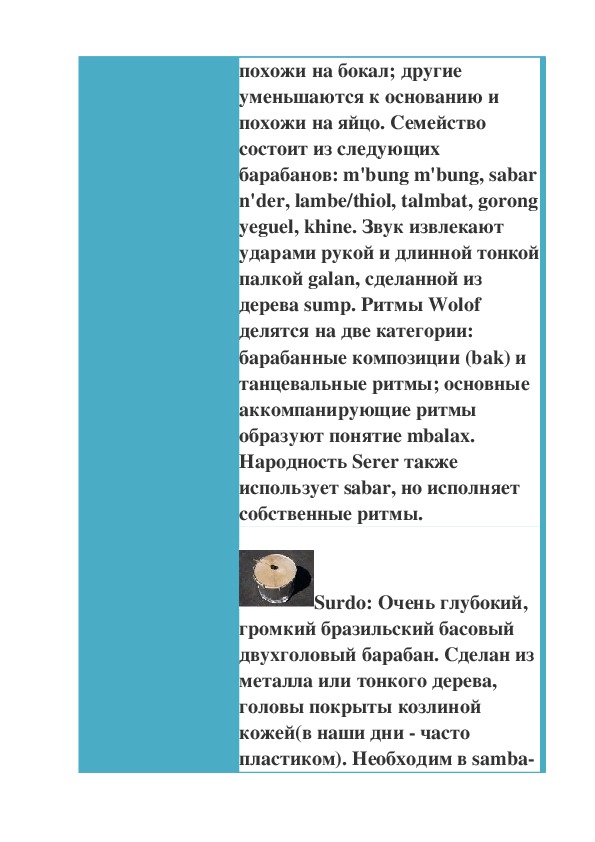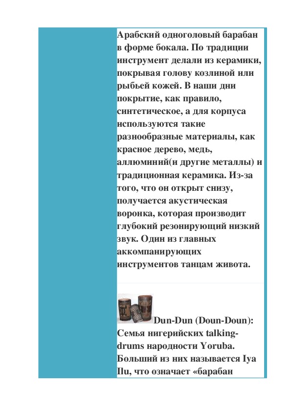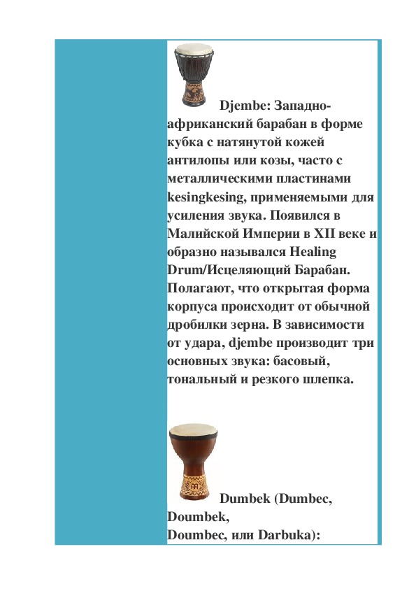 одноголовых барабанов.