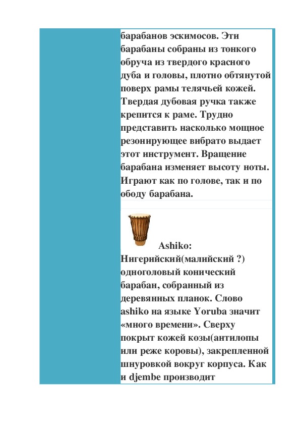 рамочный барабан. В основном