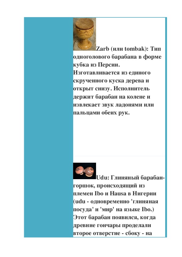 близком к квинте.Zarb (или tombak): Тип