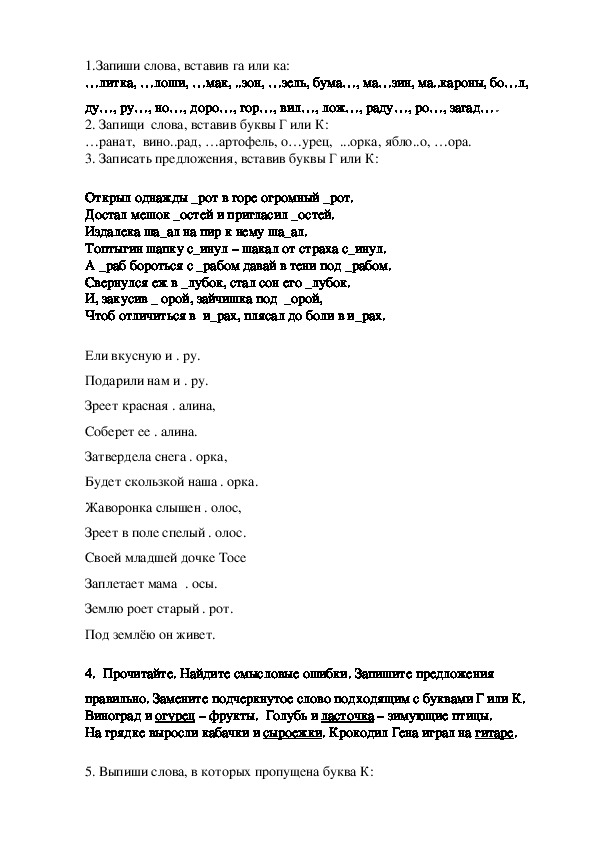 Если ребенок путает ВФ, предлагаем следующие упражнения:1.Запиши слова, вставив га или ка: