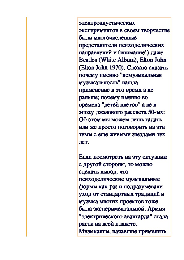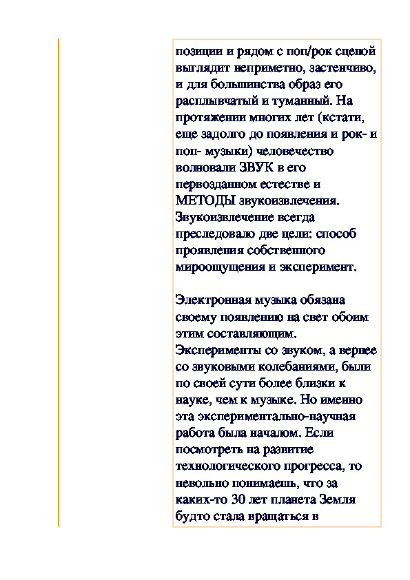 Электронная музыка обязана своему появлению на свет именно экспериментам со звуком. Эксперименты со звуком, а вернее со звуковыми колебаниями, были по своей сути более близки к науке, чем к музыке. Но именно эта экспериментально-научная работа была началом.