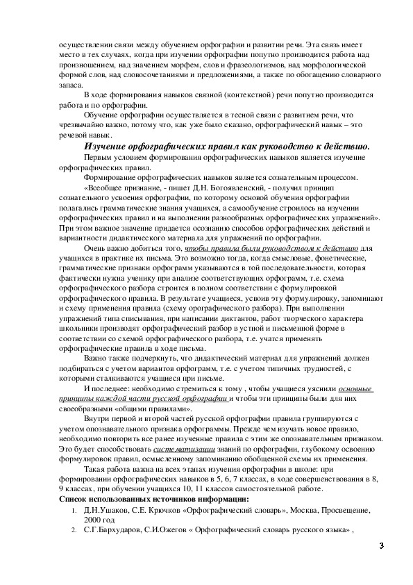 орфографических навыков, также является необходимым условием успешной работы с