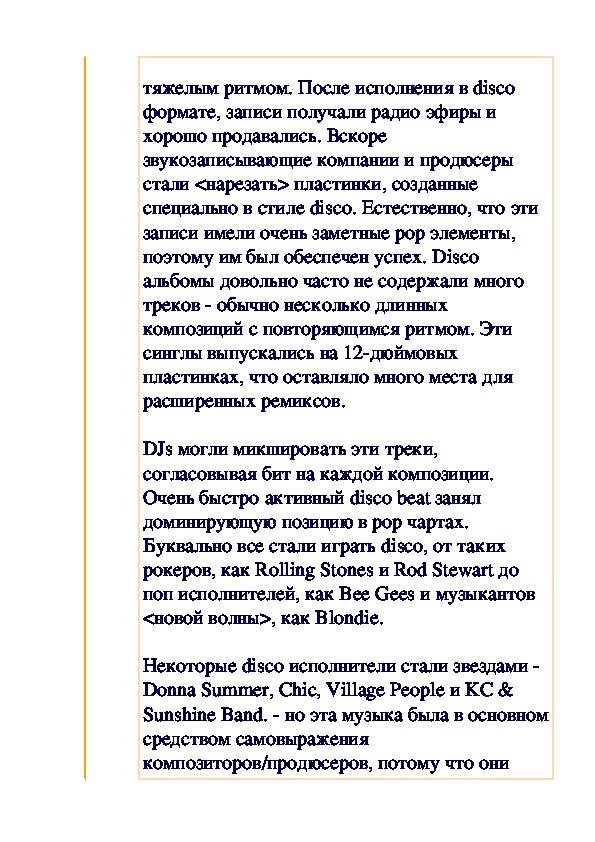 клубах особенно часто играли soul и funk стяжелым ритмом. После исполнения в disco