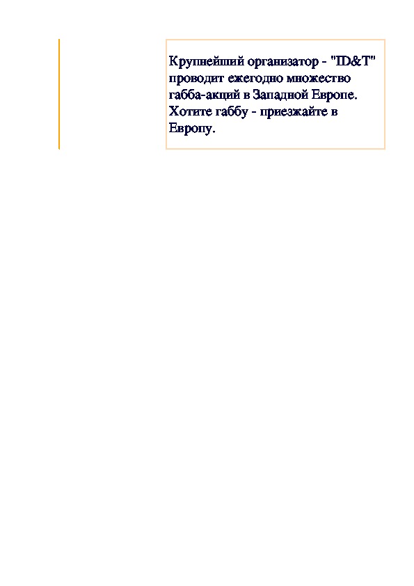 Габба - это музыкальный стиль, ставший очень популярным в последние пять лет в Голландии. Габба - это один из множества стилей, происходящий из того самого звука, родиной которого является Детройт.