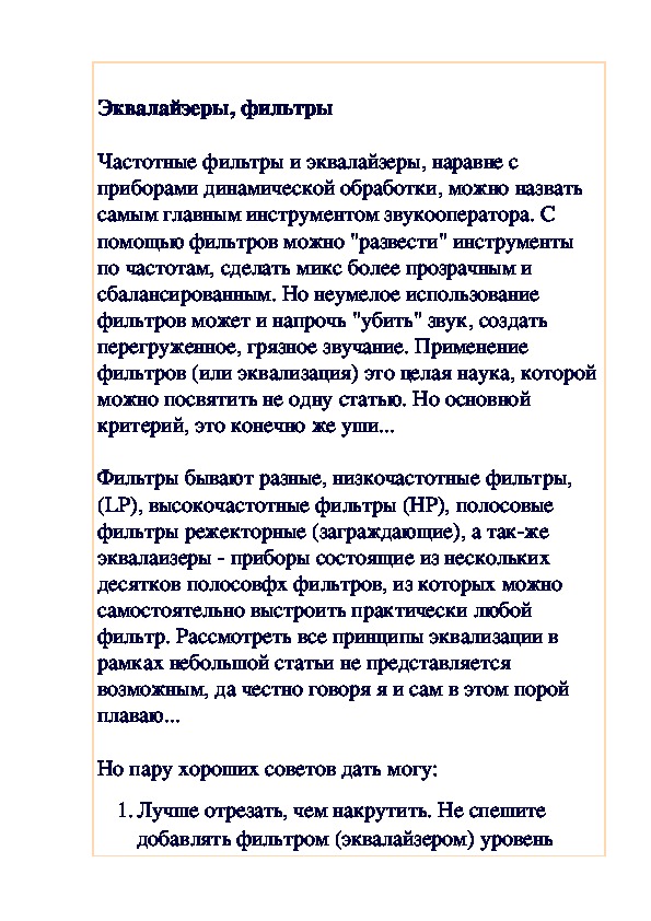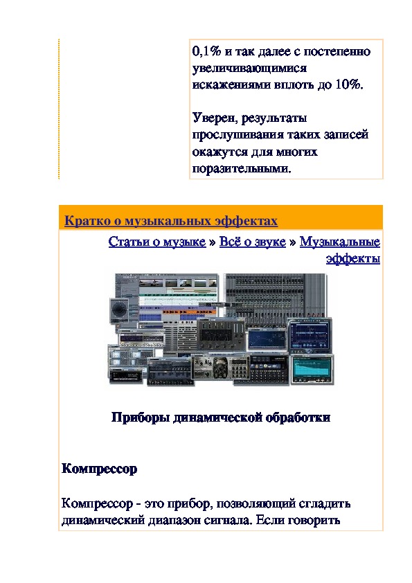 Эта статья поможет Вам выбрать то оборудование, которое максимально соответствует решаемым Вами задачам. Здесь мы будем стараться рассказывать не столько о том, КАК устроены те или иные приборы, сколько о том, ЧТО они делают со звуком.