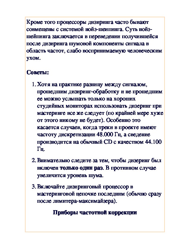 сигналу шум, в результате звук получается чище.Кроме того процессоры дизиринга часто бывают
