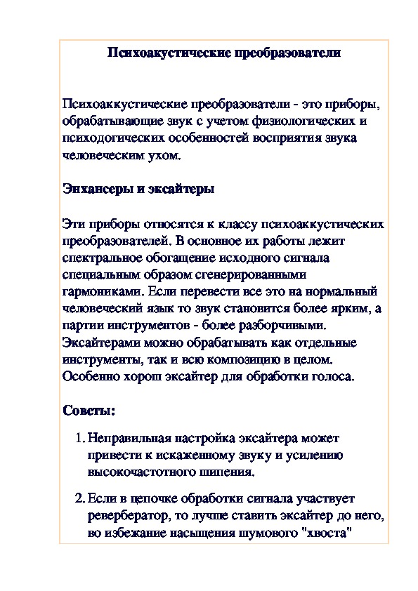 слишком "цыкает", "плюется", и т.д.Психоакустические преобразователи