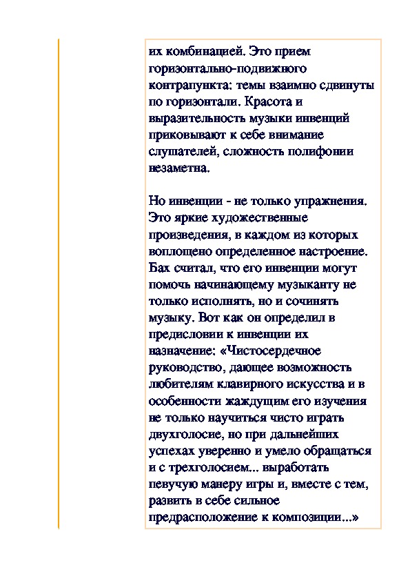 разнообразны. Одни инвенции близкик форме фуги или фугетты, часто