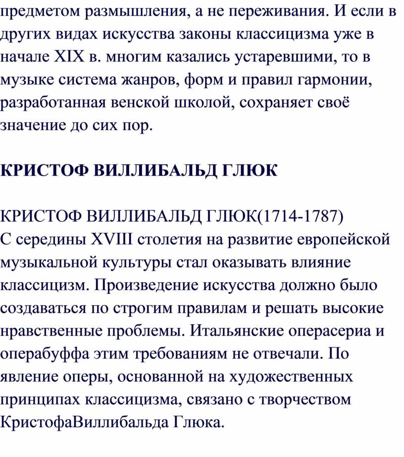 опере XVIII в. классицизм представлен произведениями Кристофа Виллибальда