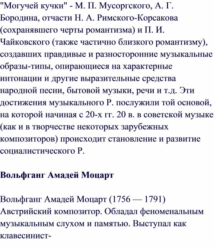 Австрия - Гайдн, Моцарт, Россия - В. А. Пашкевич, Е. И. Фомин). Обособляется