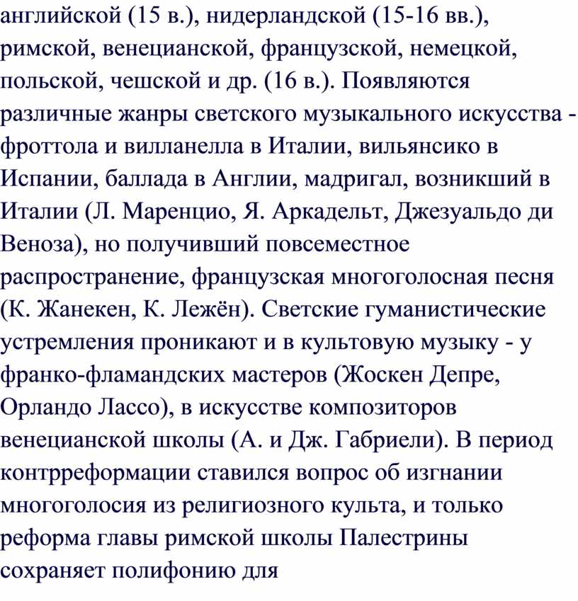 Депре, Орландо Лассо), римская (Палестрина), венецианская (Андреа и Джованни