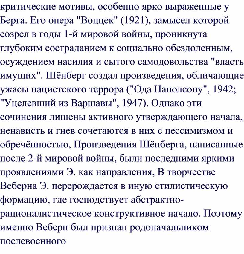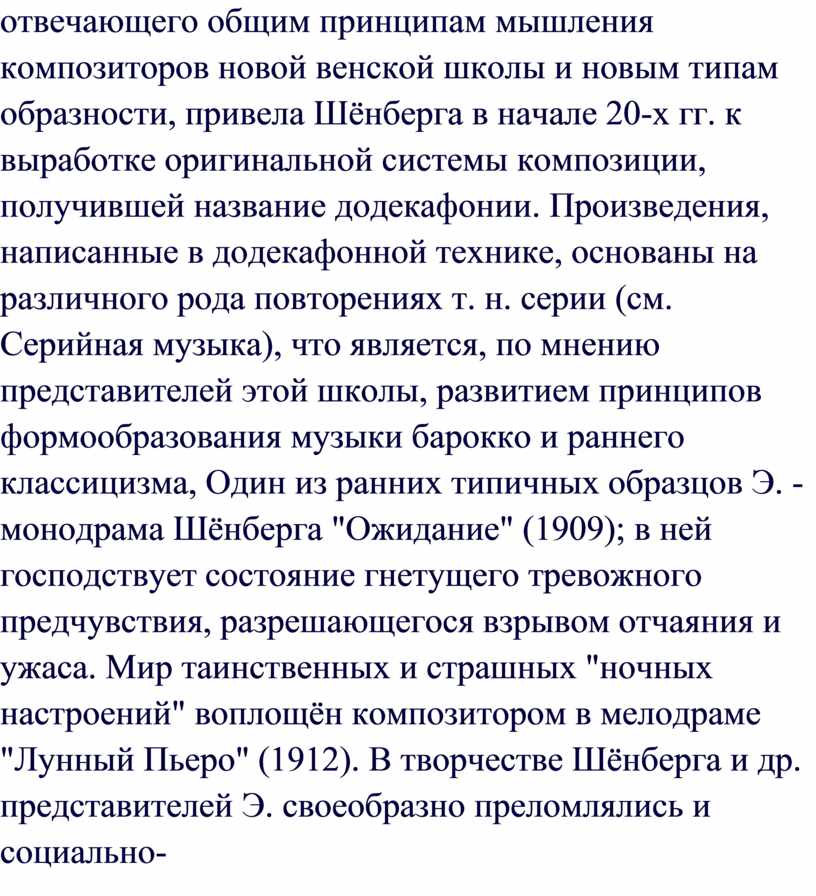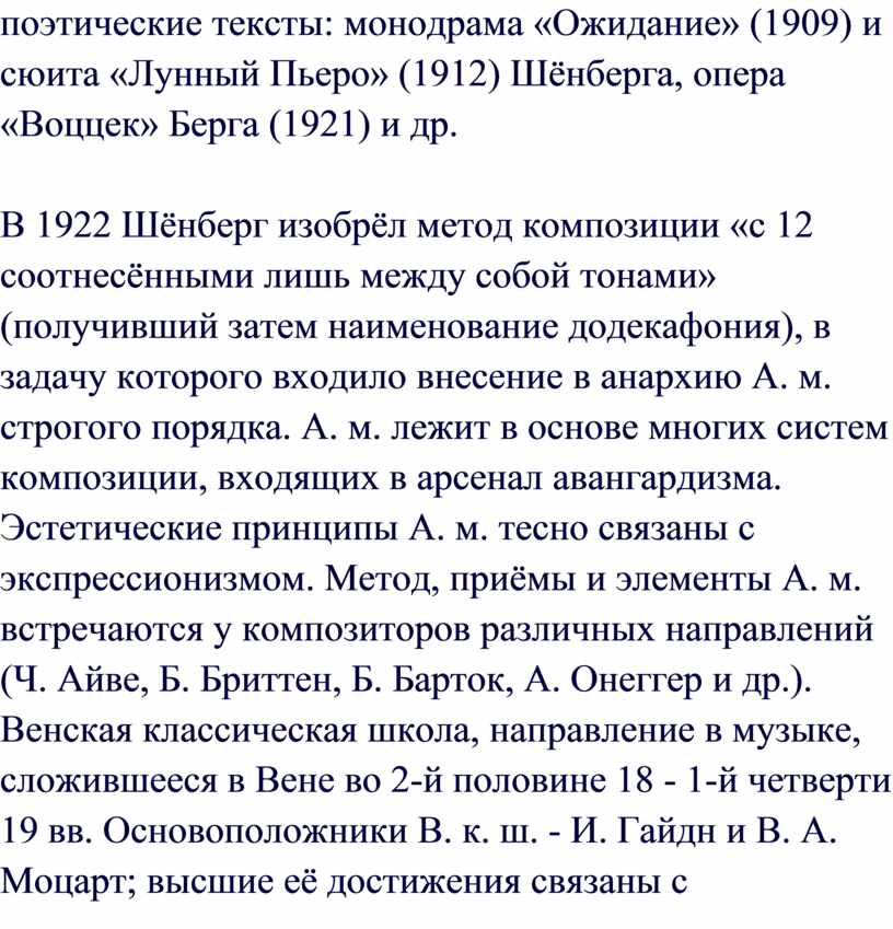 композиторов новой венской школы (А. Шёнберг, А. Берг, А. Веберн). Основной