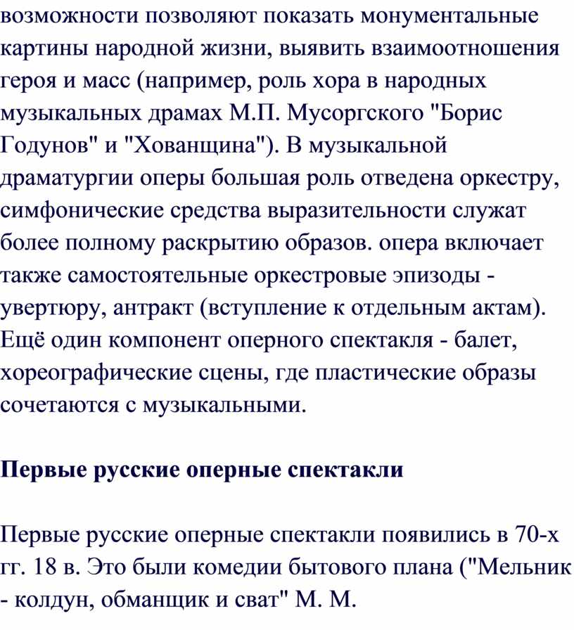 закостенелую условность аристократической "серьёзной" оперы. Бурно