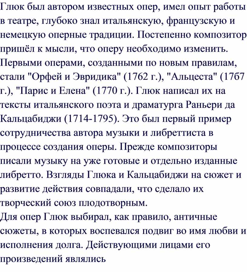 Глюка, создавшего новую трактовку этого вида музыкальнодраматического