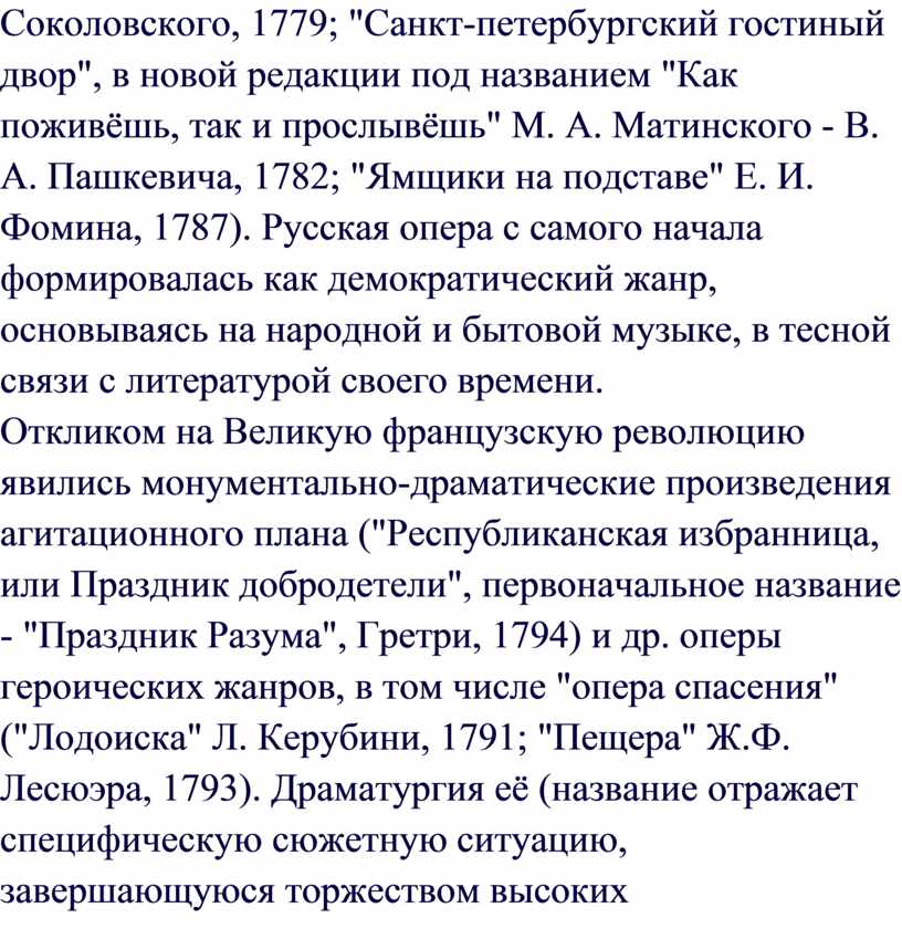 (Италия - Дж. Перголези, Франция - Ж. Ж. Руссо, П. Монсиньи, А. Гретри,