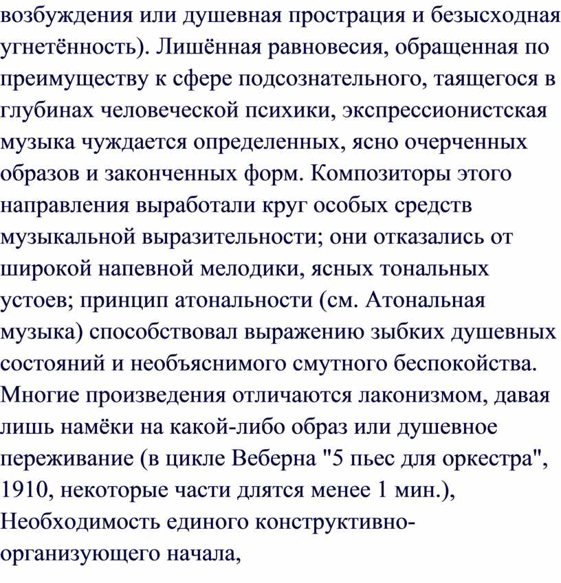экспрессионистская музыка чуждается определенных, ясно очерченных образов и