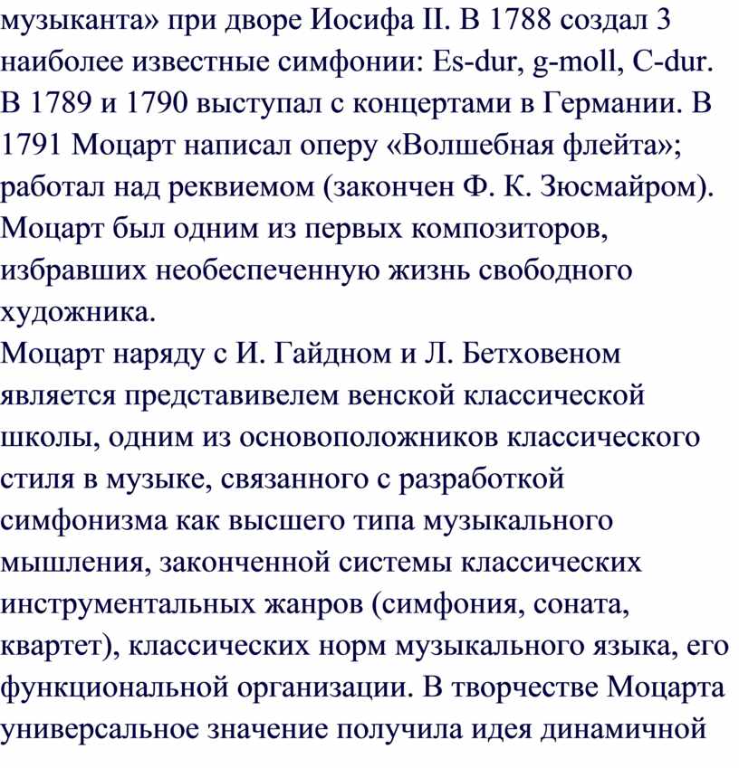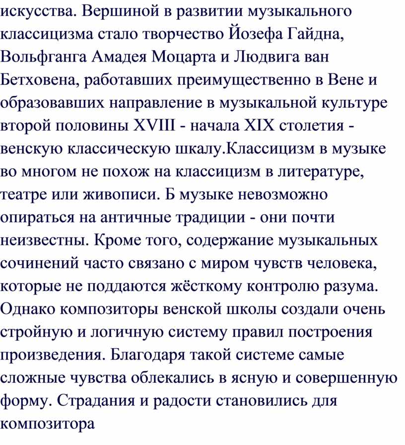 искусства. Вершиной в развитии музыкального классицизма стало творчество