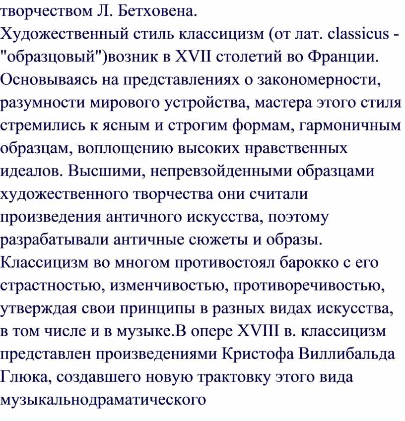 шкалу.Классицизм в музыке во многом не похож на классицизм в литературе,