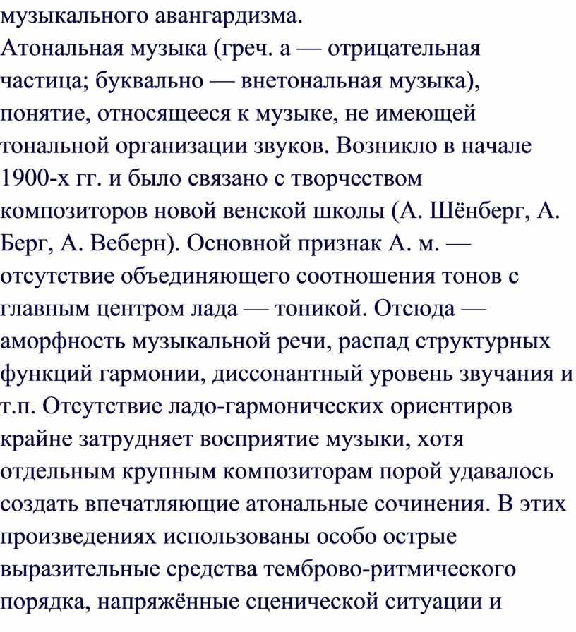 Атональная музыка (греч. а — отрицательная частица; буквально — внетональная