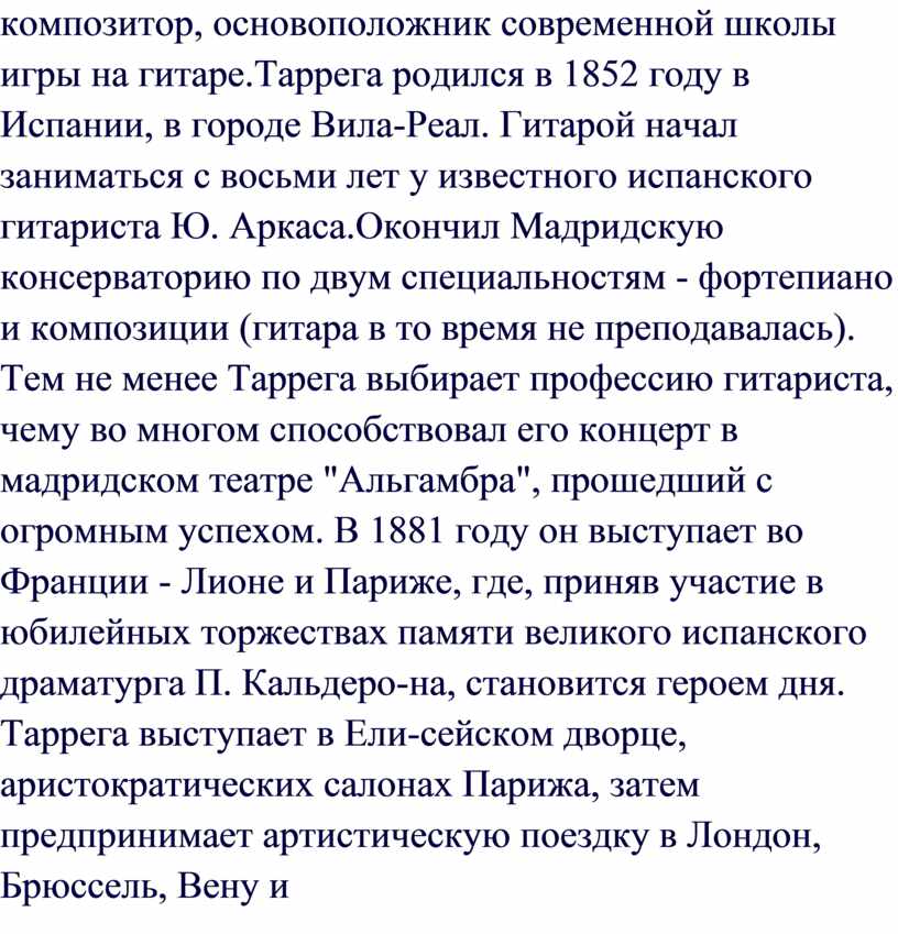 школы игры на гитаре.Таррега родился в 1852 году в Испании, в городе
