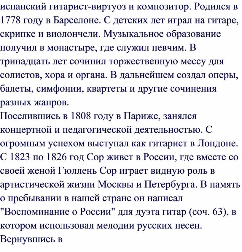 в нашей стране он написал "Воспоминание о России" для дуэта гитар