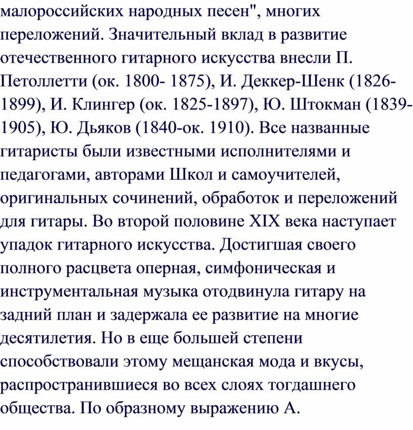 второй половине XIX века наступает упадок гитарного искусства. Достигшая