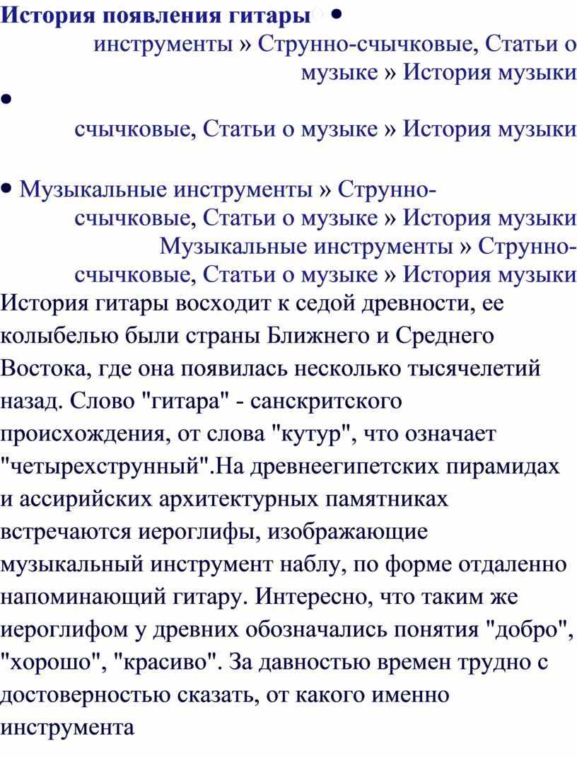 назад. Слово "гитара" - санскритского происхождения, от слова