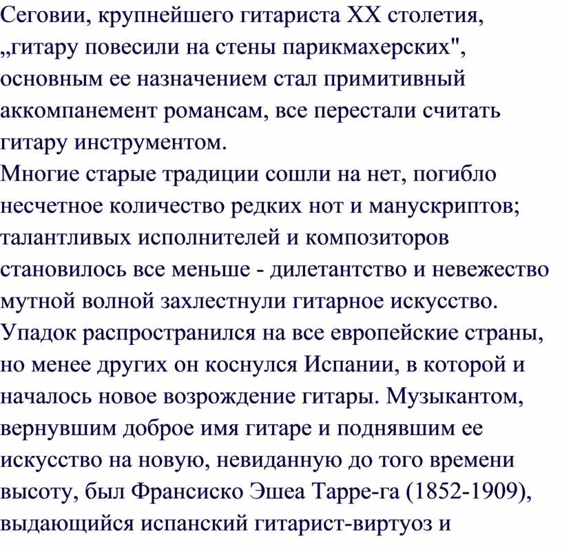 обработок и переложений.Андрес Сеговия - крупнейший испанский