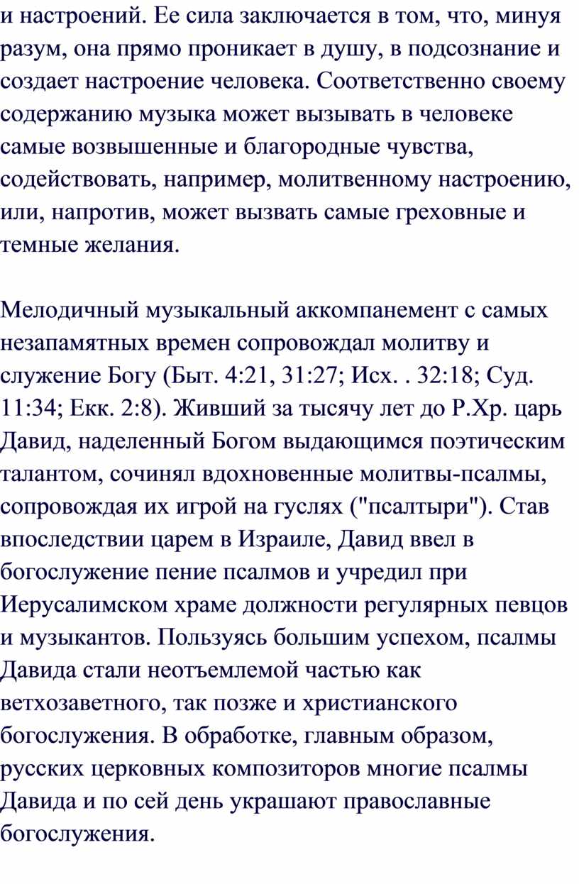 духовными, поя и воспевая в сердцах ваших Господу" (1 Цар. 16:16-23; 2