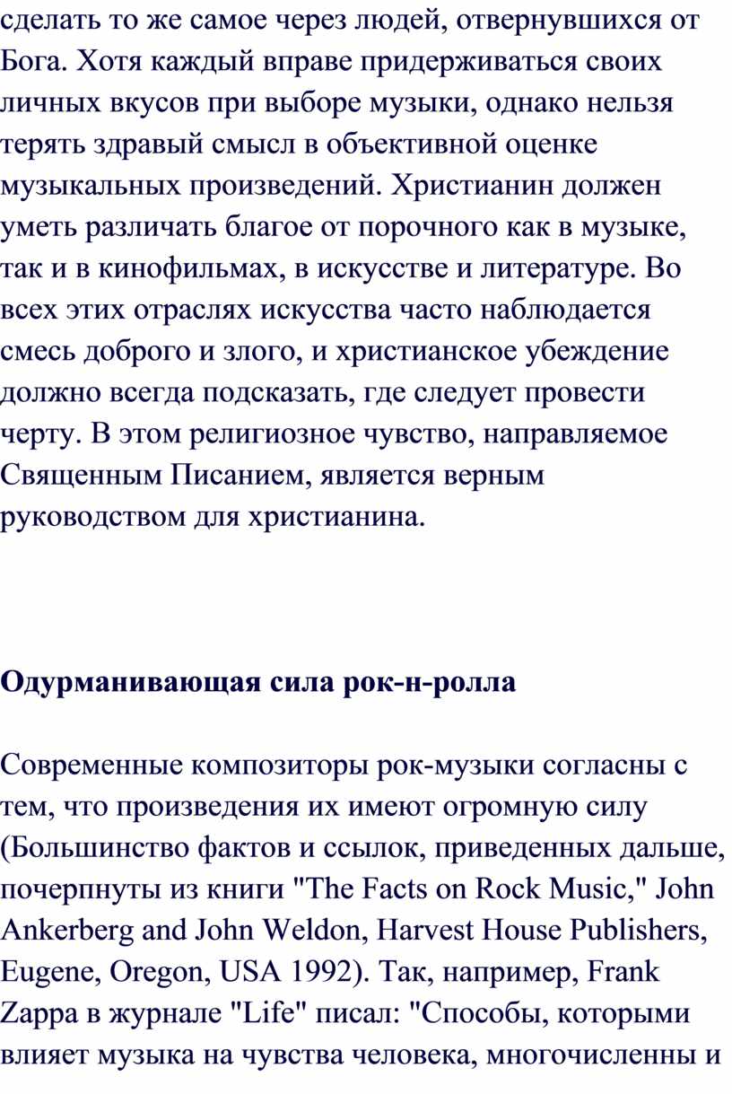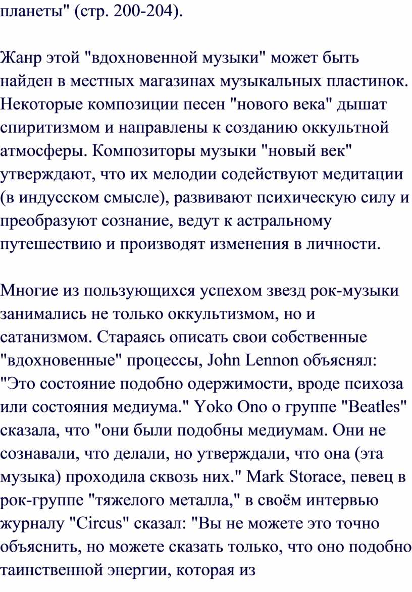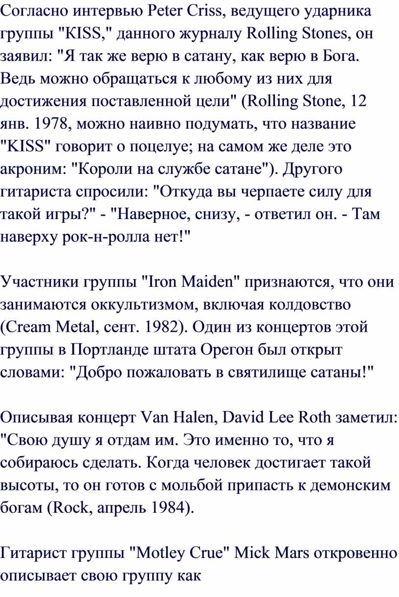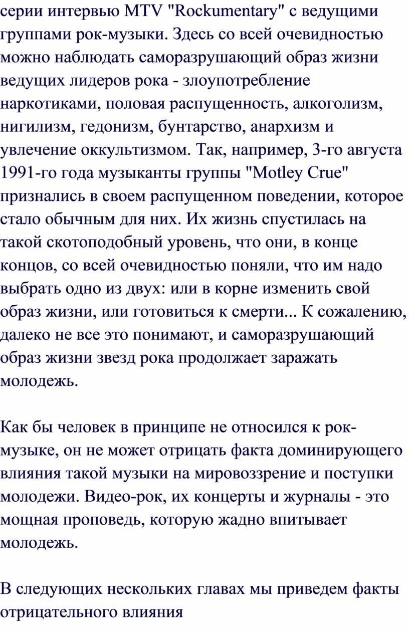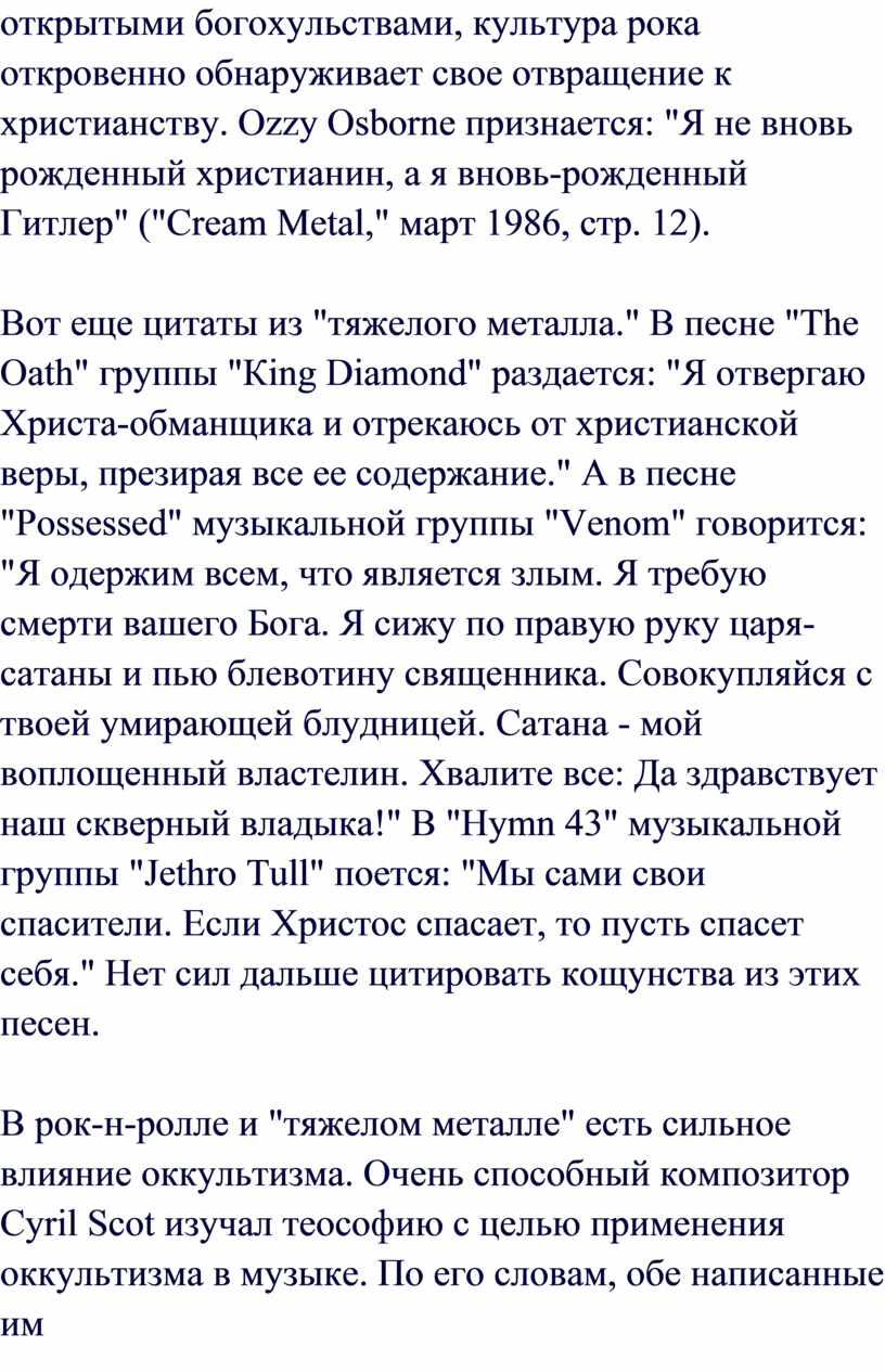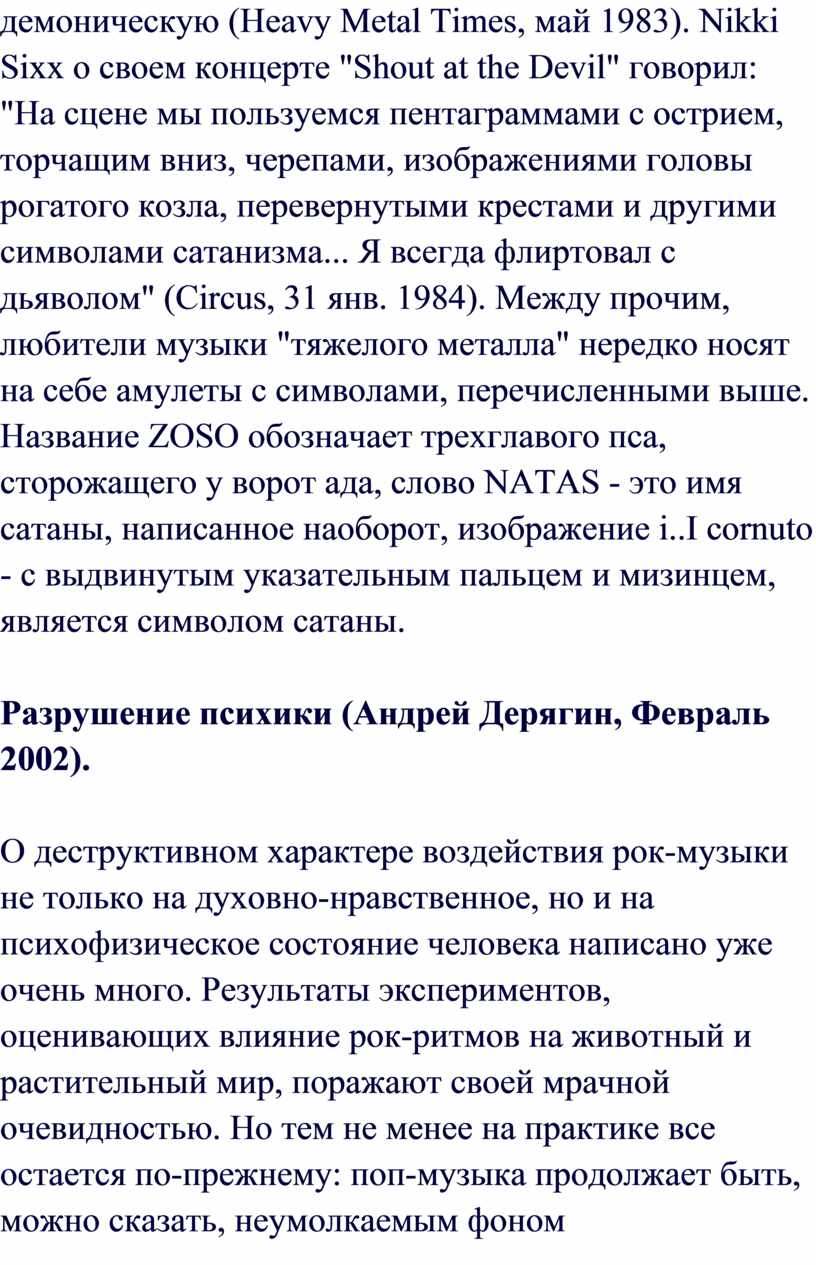 сатанинские элементы в некоторых формах рок-музыки. В заключение рассмотрим