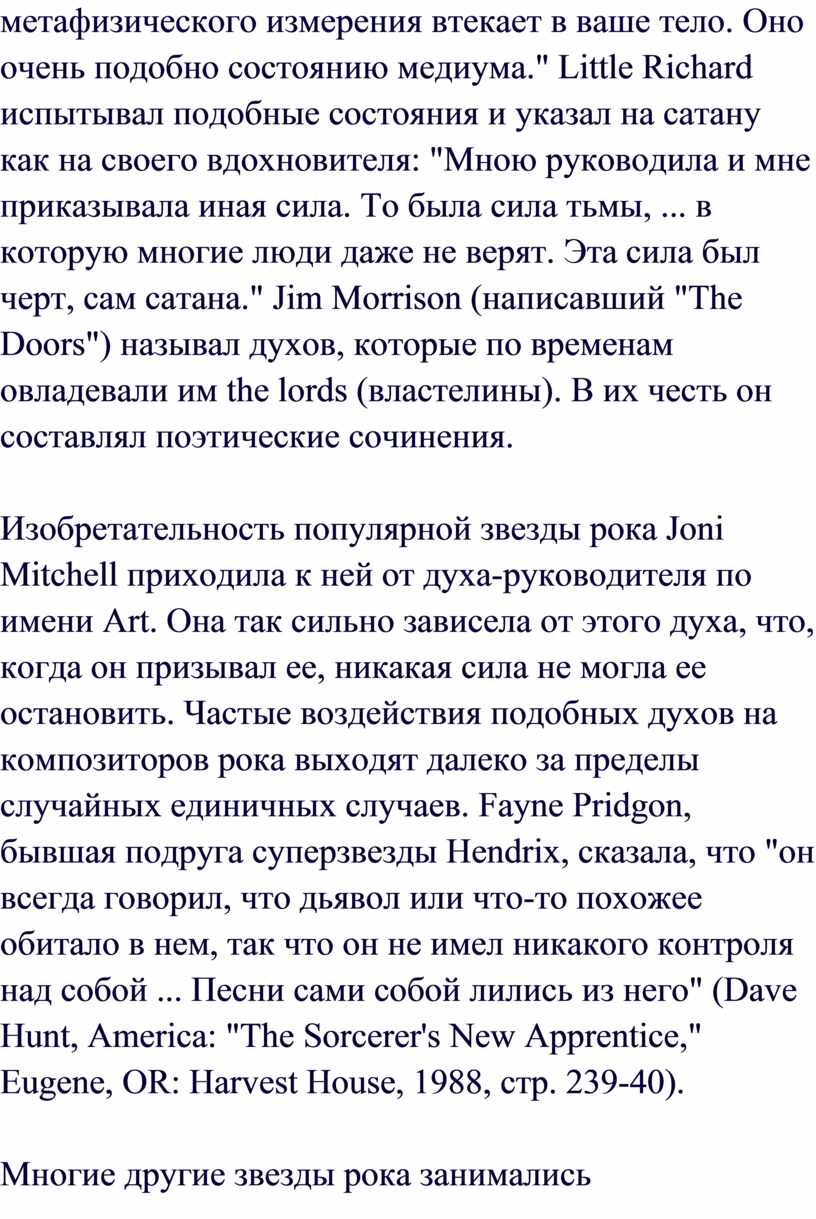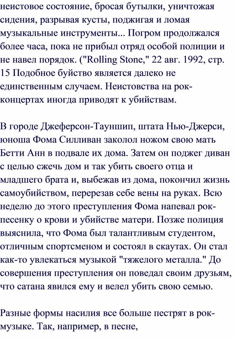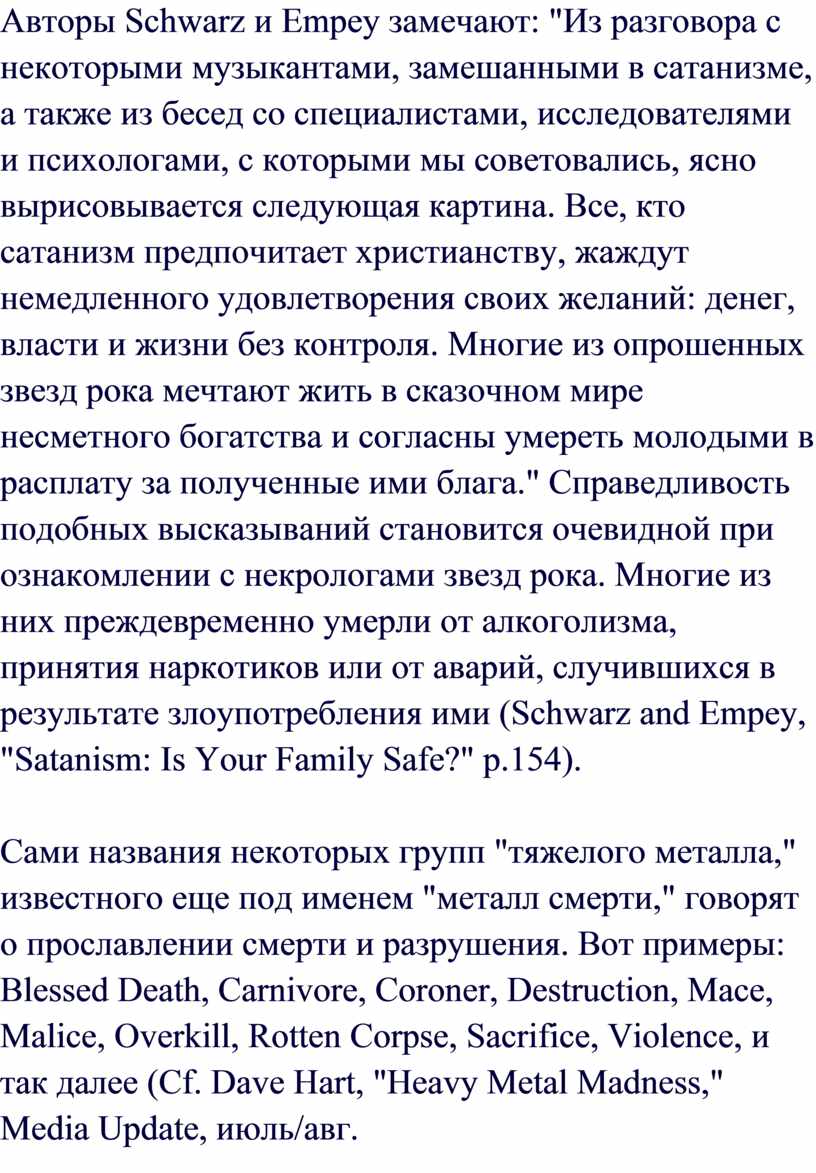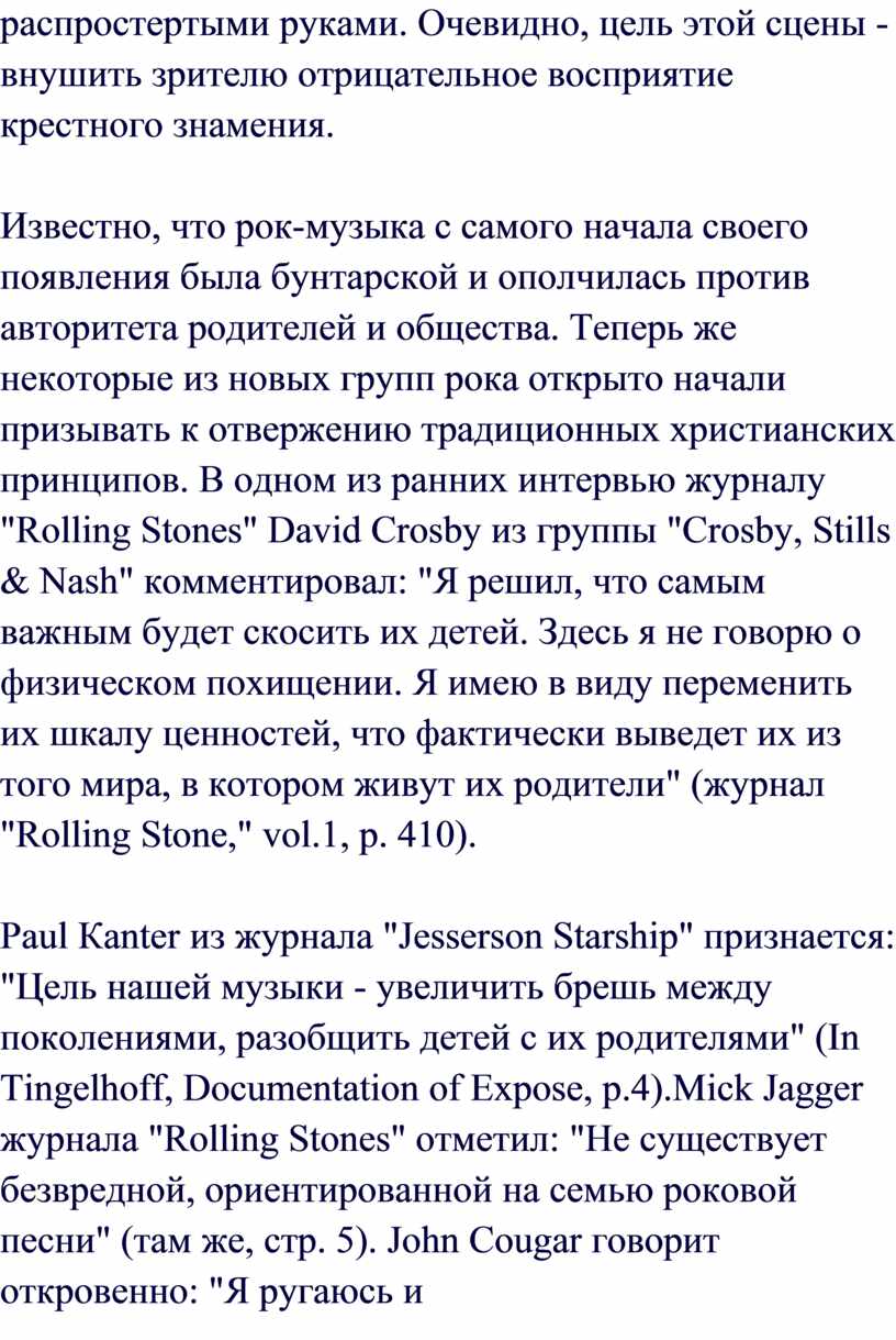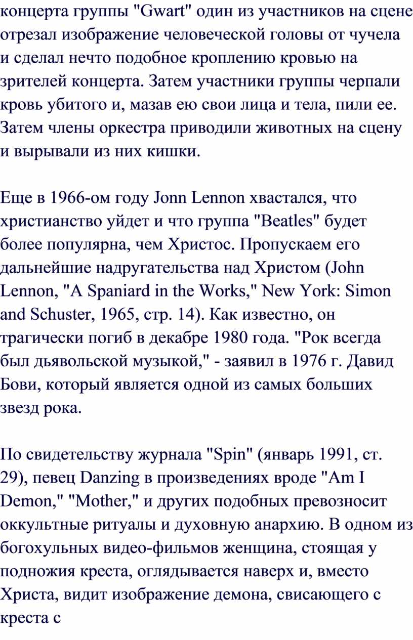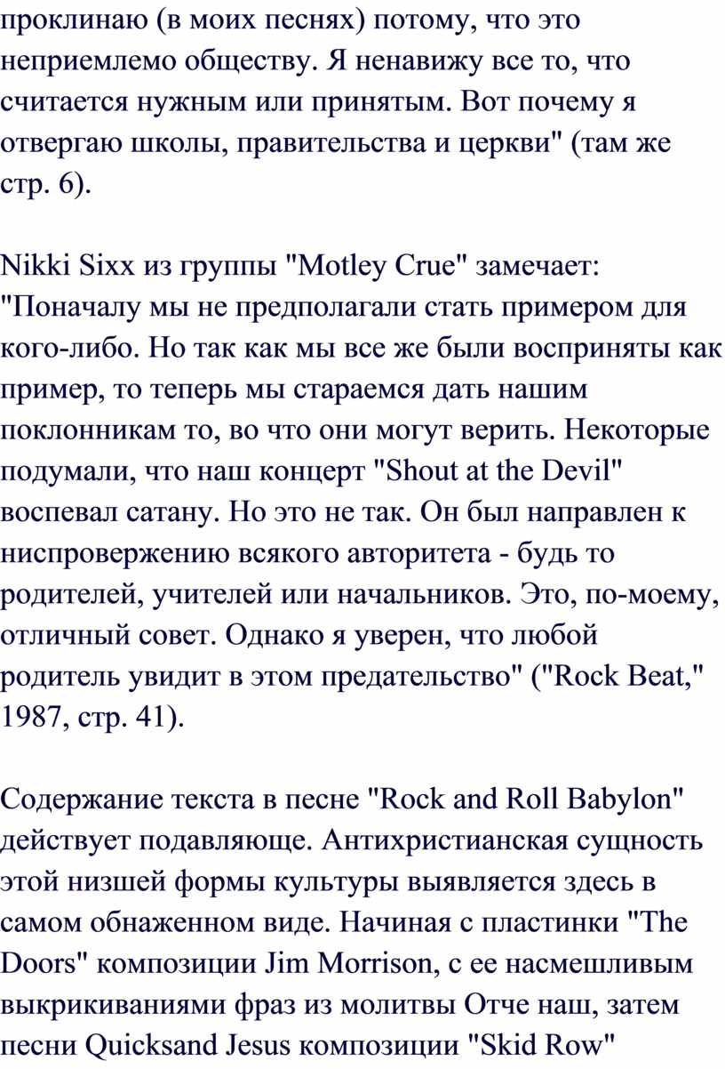 сатанинские элементы в некоторых формах рок-музыки. В заключение рассмотрим